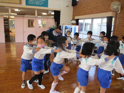 じゃんけんカードゲームや歌、じゃんけん列車、ふれあい遊びなど、いろいろな遊びをディニーアさんと楽しみました。