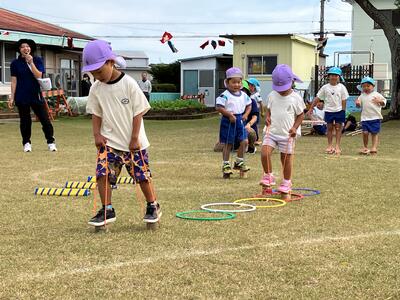 リレーは、年中長混合グループでのレースと、年長VS 1年生 VS保護者のレースを行い、盛り上がりました。