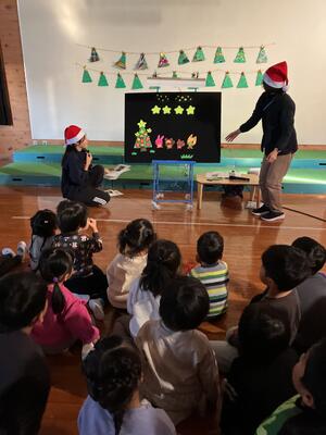 ブラックパネルシアター「ほしのクリスマス」で、クリスマス会が始まりました。