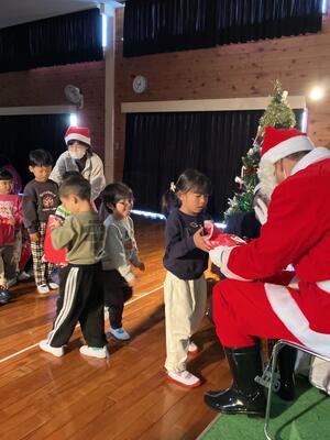 優しいサンタさん、一人一人にクリスマスプレゼントも持ってきてくれました。「プレゼントは何かな?」お家に帰ってからのお楽しみです。