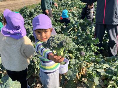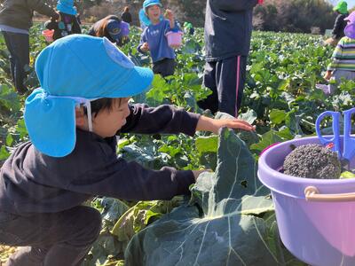 地域の鈴木さんのご厚意により、ブロッコリー収穫体験をさせていただきました。